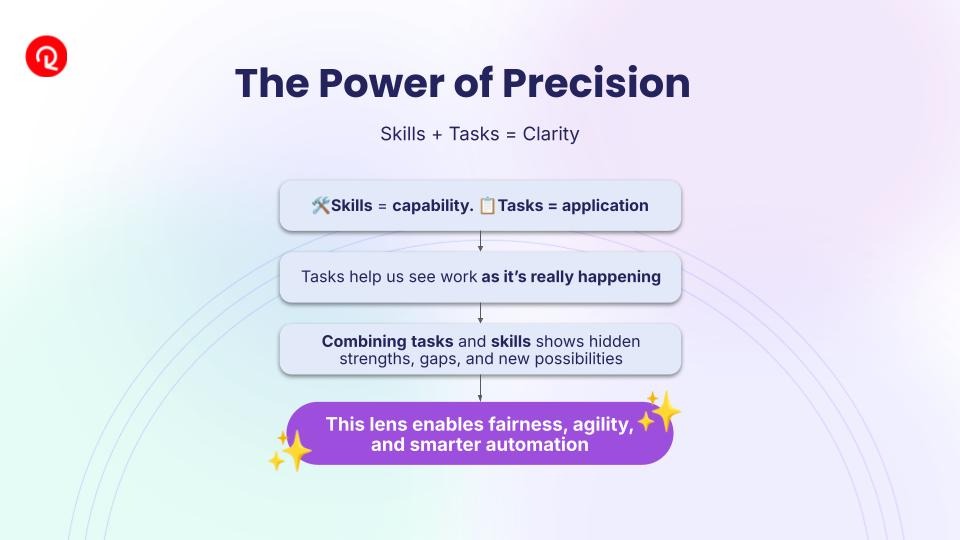 As AI enters everyday workflows, this gap becomes visible. AI does not automate skills like communication or problem solving. It automates tasks embedded inside roles. Without task-level visibility, leaders cannot see: